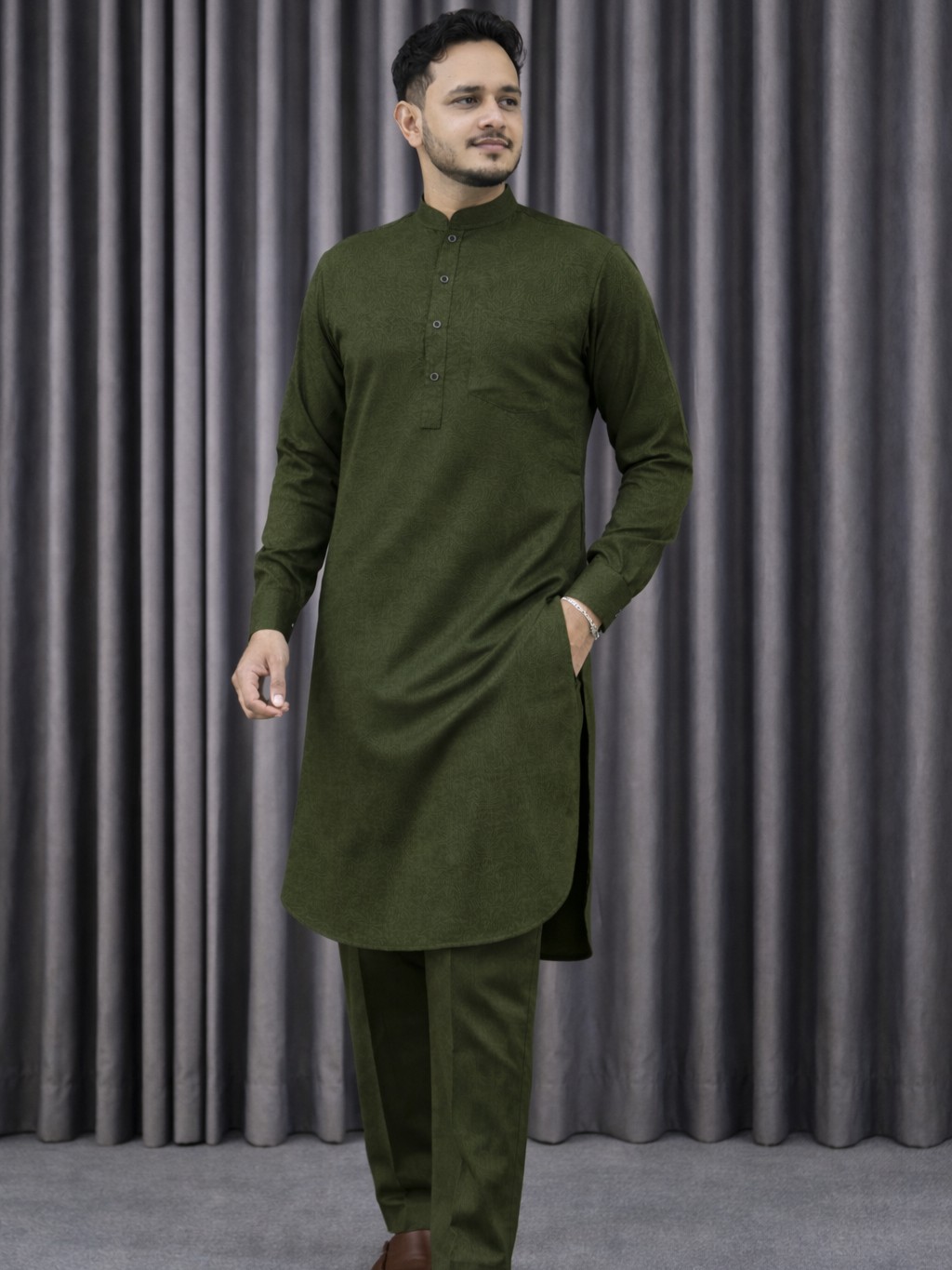 Formal Besic Kabli set(Colour-Olive) - 1037