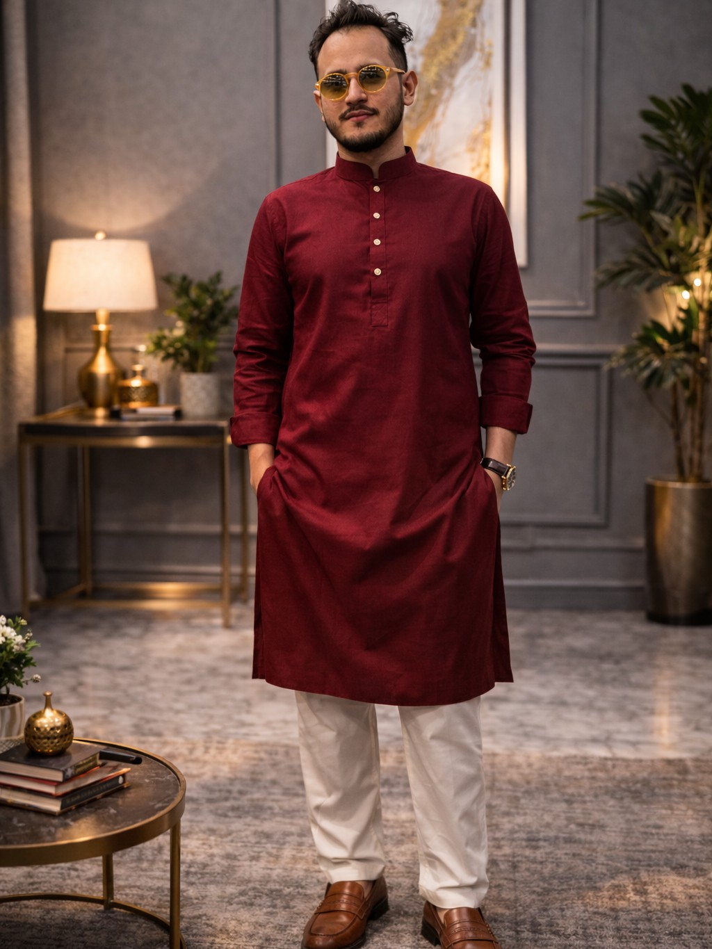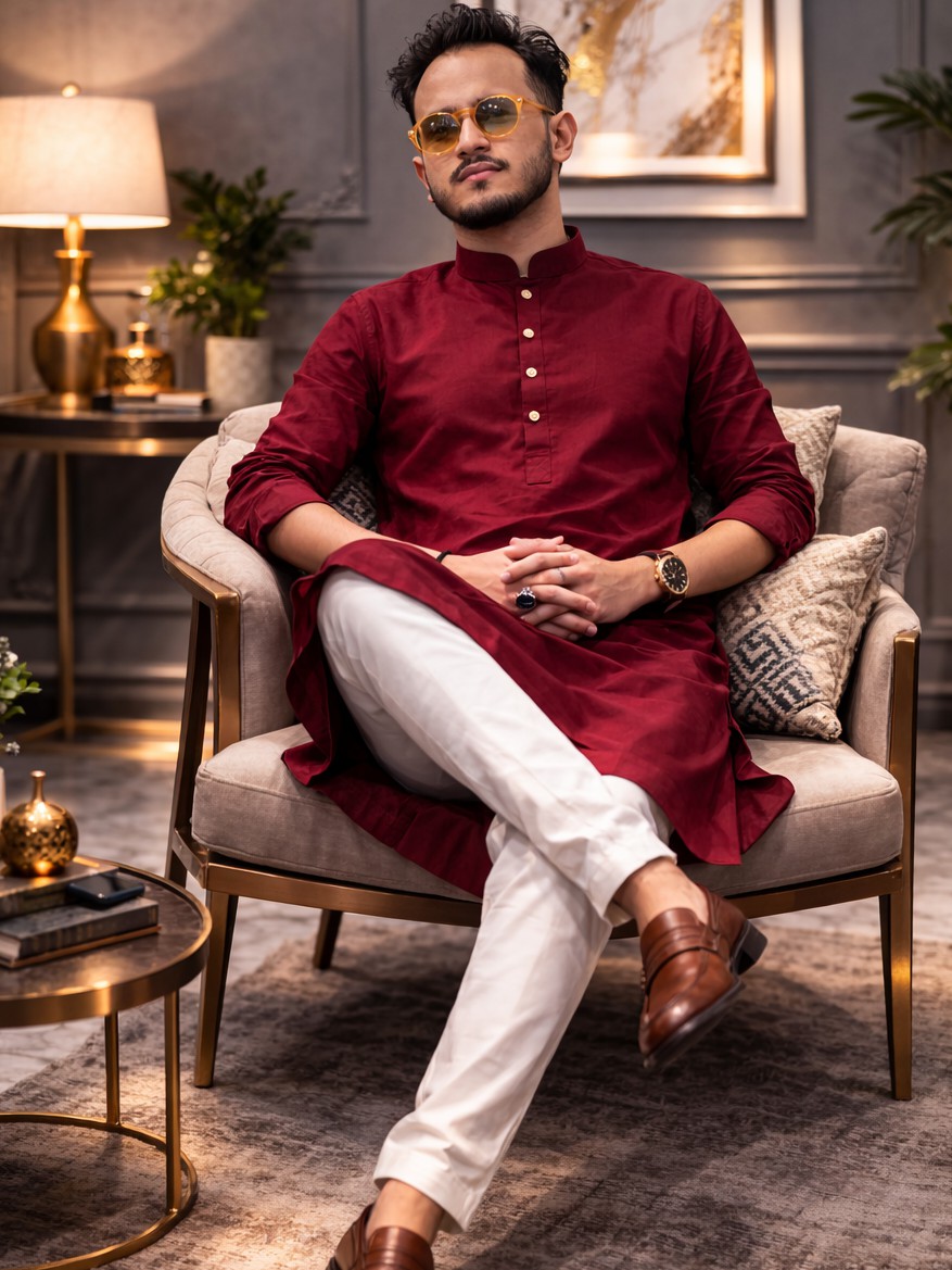 প্রিমিয়াম কটন পাঞ্জাবি পায়জামা সেট (কালার-মেরুন) - 1050